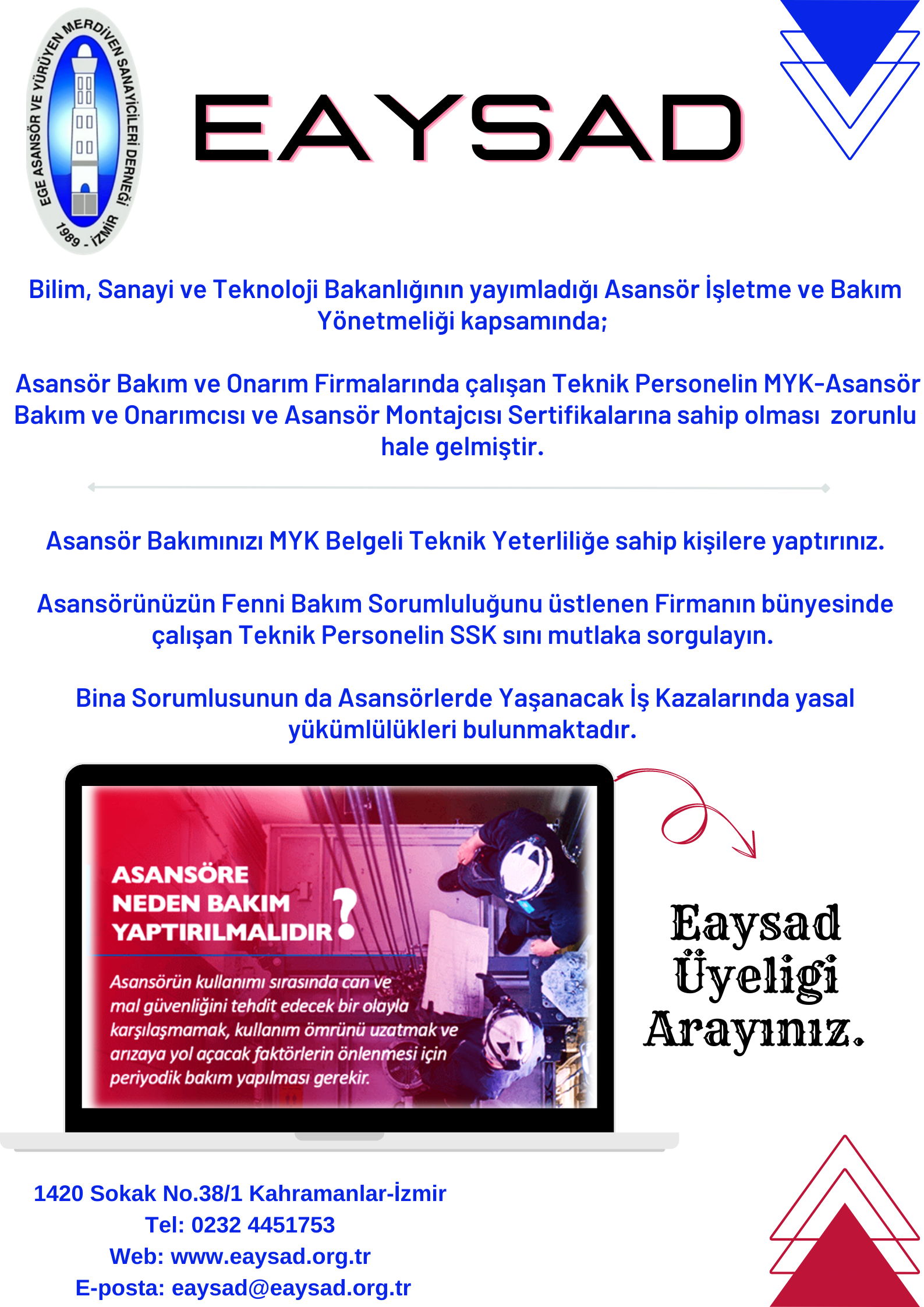 Asansör sektörünün gelişimi ve haksız rekabetin önlenmesi için siz de EAYSAD ailesine katılın.